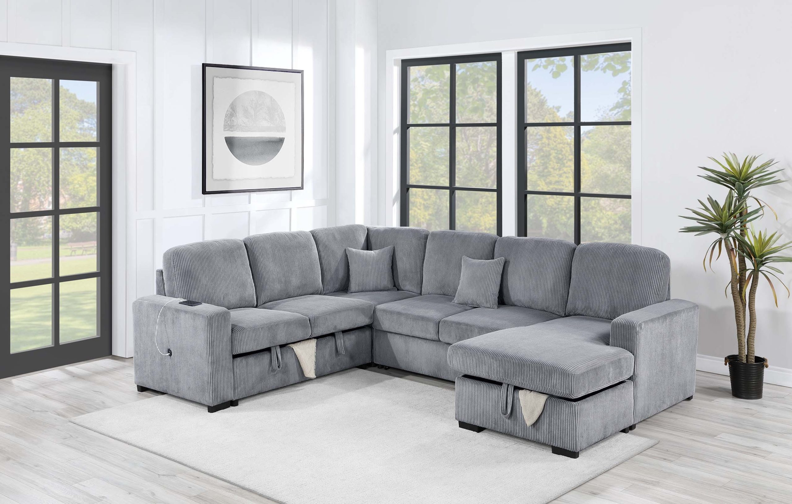 4 Piece Convertible Sectional Sleeper Sofa, Chaise Storage, Sofa Storage & USB Port