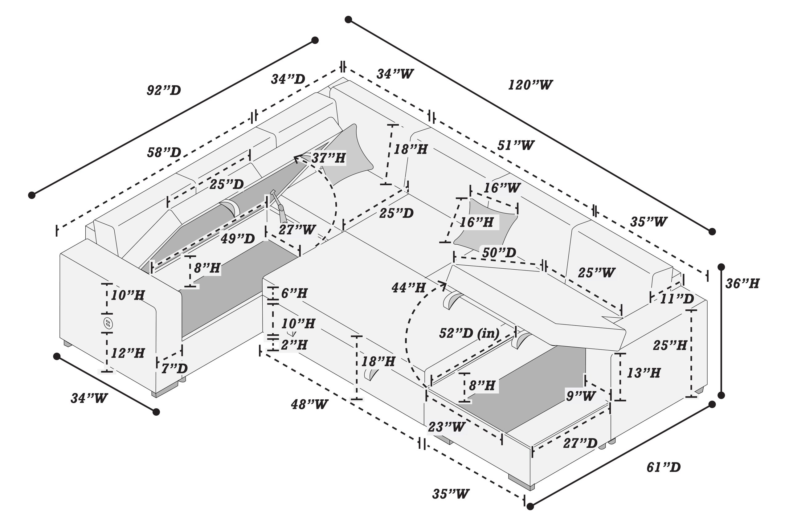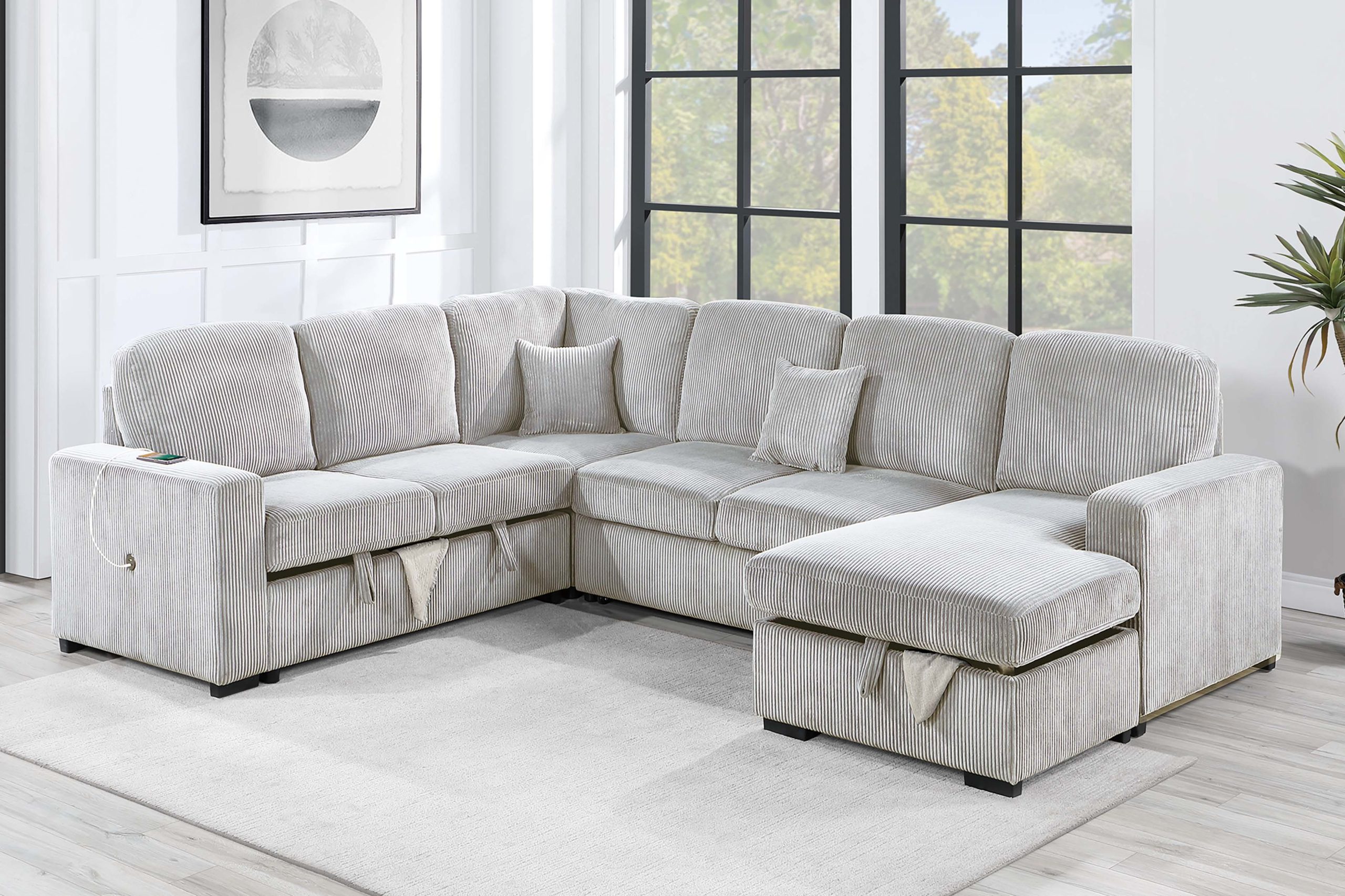 4 Piece Convertible Sectional Sleeper Sofa, Chaise Storage, Sofa Storage & USB Port
