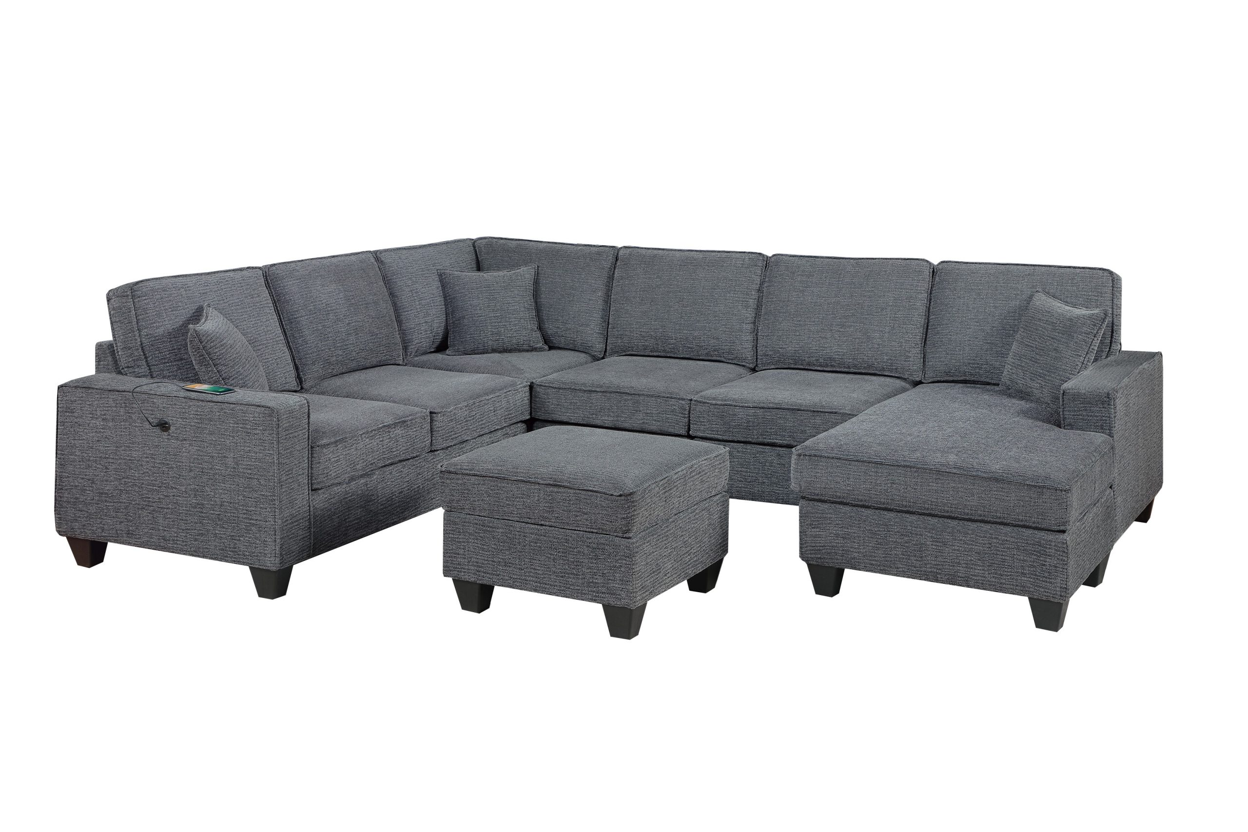 4 Pieces Sectional W/USB Ports Reversible Chaise + Cocktail Ottoman