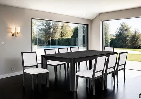 • Table Extendable w/ Leaf Fits Up To 10 Chairs